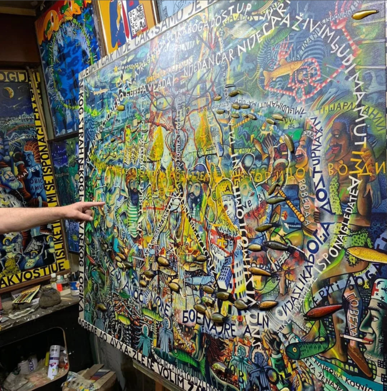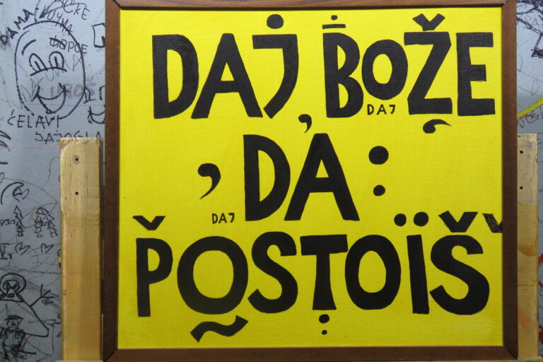 Jedom prilikom mi je Radović rekao da uopšte ne razume šta ljude privlači u ovim njegovim mudrostima i zašto kupuju slike sa tim natpisima. I to onako usput, pošto smo razgovarali o nečem drugom, to je naveo kao jedan usputni primer nečega što mu nije jasno. Razume se da je na taj način hteo da me pita da li možda ja znam zašto se to dešava, a naročito zato što se to dogodilo u okviru razgovora u kome smo se našli upravo da bih kupio tri takva njegova rada. Dva za sebe, a jedan me neko zamolio da mu kupim. Od tih radova mi je ostao samo „БОГ ЈЕ ДОБАР ЧОВЕX“ koji sam okačio na Fejs čim sam saznao da je iz čista mira umro a da se nije ni javio. Jeste da se nismo videli neko vreme, možda baš od tad, čak vrlo moguće jer to je bilo negde na početku korone, a od onda smo se samo nešto pičkarali… a ne, rekao sam da neću o tome u ovom tekstu.