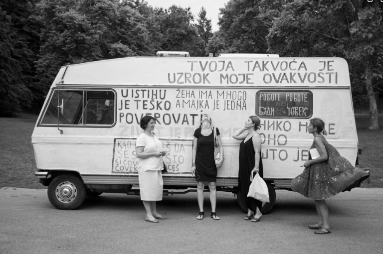 Ali pre nego što je junak ove priče, koji je pre neki dan umro a nije se nikom javio, postao poznat širim masama, imao je i akciju sa fotografom Ivanom Zupancom i kombijem pod nazovom Umetnobil koji je sav bio ispisan tim njegovim mudrostima. Ja nisam ni znao za to vozilo a onda mi se desilo da to čudo od prevoznog sredstva prozuji pored mene u Brankovoj ulici kada sam jednom prilikom išao u APR. Zamislite to iznenađenje! I potrčim za njim da vidim dole na semaforu izbliza o čemu se radi, ali nisam stigao. Upalilo se zeleno i ode ta sprava svojim putem dalje Brankovim mostom ka Zemunu verovatno.