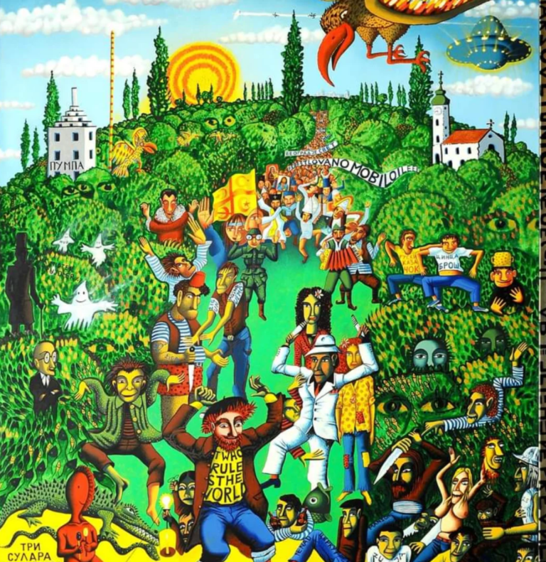 Jer ljudi na slikama vole jasno i glasno, a ne tu da mi izmišljaš nekakve cvetove u patikama i Marsovce koji se naseljavaju po mom gradu. I taj neko je zaista uspeo i ono njegovih kopija po svim beogradskim galerijama pa čak i velikih reprodukcija po knjižarama i suvenirnicama. Bilo ih je više, ali se najviše istakao i izgleda pozamašne pare na tome zaradio akademski slikar Vuk Vučković. Čak je uspeo i da Radovićevu prepoznatljivu naivu pretovori u akademski stil. Ali šta da se radi… To se ne računa u plagijat jer zapravo to i nije, koliko god ličilo i koliko god svi koji znaju za Radovićevu Beogradsku fazu za svaku od tih slika mislili da je Radovićeva. To samo ovako poneko od nas sa strane može da nazove plagijatom, ali u suštini se to vodi kao inspiracija. Ali ako je i inspiracija, neka se i neko drugi najeo Radovićevog kruha u kom on tek pred kraj svoje umetničke karijere nije mnogo oskudevao. Kad sam ga upoznao, bio je zahvalan na parama za najjeftiniju paklu cigareta. Istinski zahvalan i skroman, odavno naviknut na hleb, kifle, parizer i na druženje uz vutru i pivo. Da ne bude zabune, kad sam pokušavao da se prisetim imena Vuk Vučković, nazvao sam našu znamenitu istoričarku umetnosti Jelenu Spaić koja se nekad prezivala Pavlović pre nego što se udala, a ni sad se zapravo ne preziva Spaić, za one koji nisu znali, jer ponovo se udala pa se sad preziva Mladenović (utefterišite to da se ne zbunite) i kad sam joj prosledio link na sajt Vuka Vučkovića, ponudila mi je njegov kontakt da se ja sa njim sve lepo dogovorim pre nego što objavim ovo što čitate, ali sam ja to bez izakvih pregovora decidirano odbio jer nema potrebe. Kaže ona možda je on to pokupio negde u Njujorku i tako neke stvari, ali kakve to veze ima odakle je pokupio kad to potpuno isto izgleda kao Radović samo što je skockano? Nebitno je i irelevantno. Uticaj Radovića je očigledan i samo ćoravom nevidljiv, jer kao što rekoh, Jelena u životu nije videla nijedan Radovićev rad iz te faze nego samo sve ono po čemu se kasnije proslavio. Uostalom, ona za sebe lepo i kaže da ne prati scenu, pogotovo otkako su zamrli Fluizmi. A ako je u pitanju slučajnost – još bolje. Znači da kolektivna svest razbija i to u okviru iste kulture, a to automatski znači da jedinstvena kultura i prostor zaista postoje.