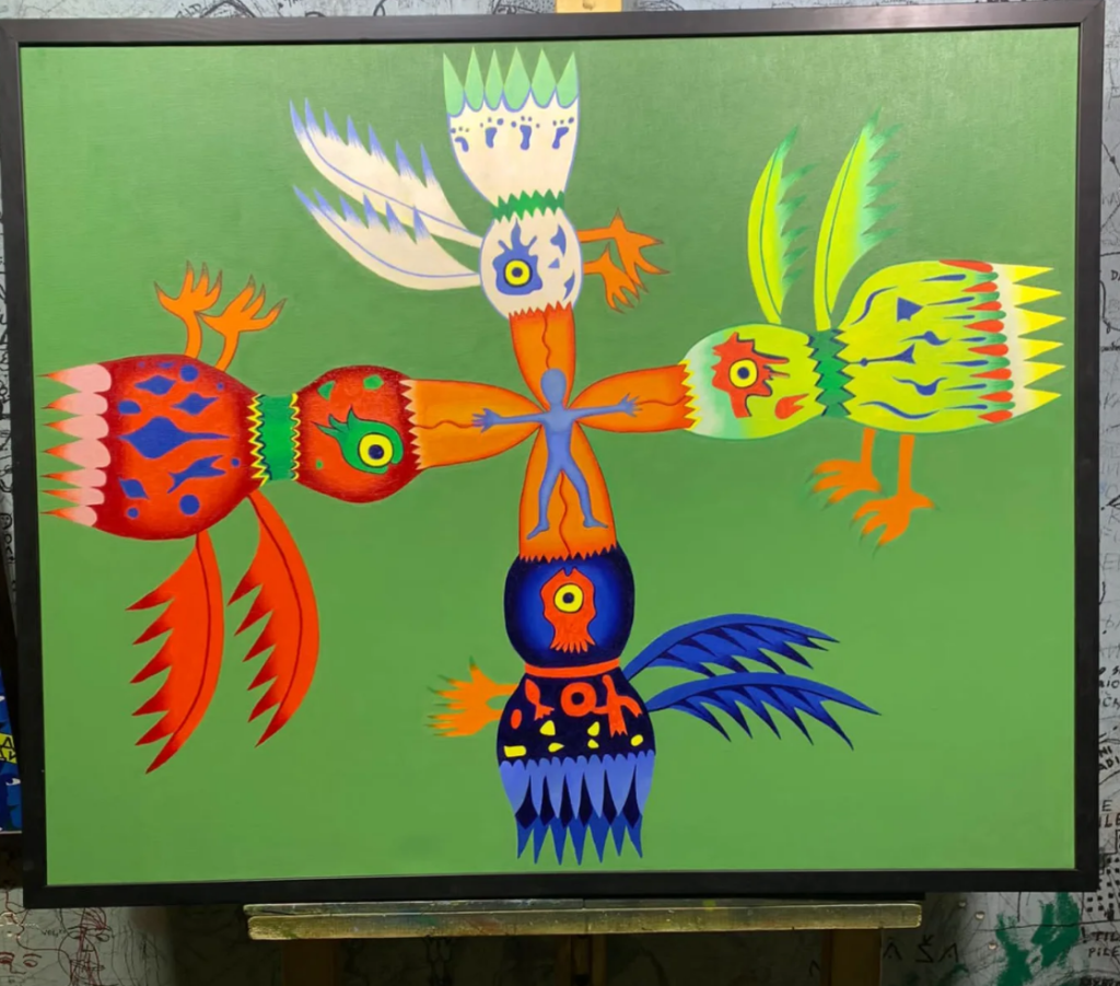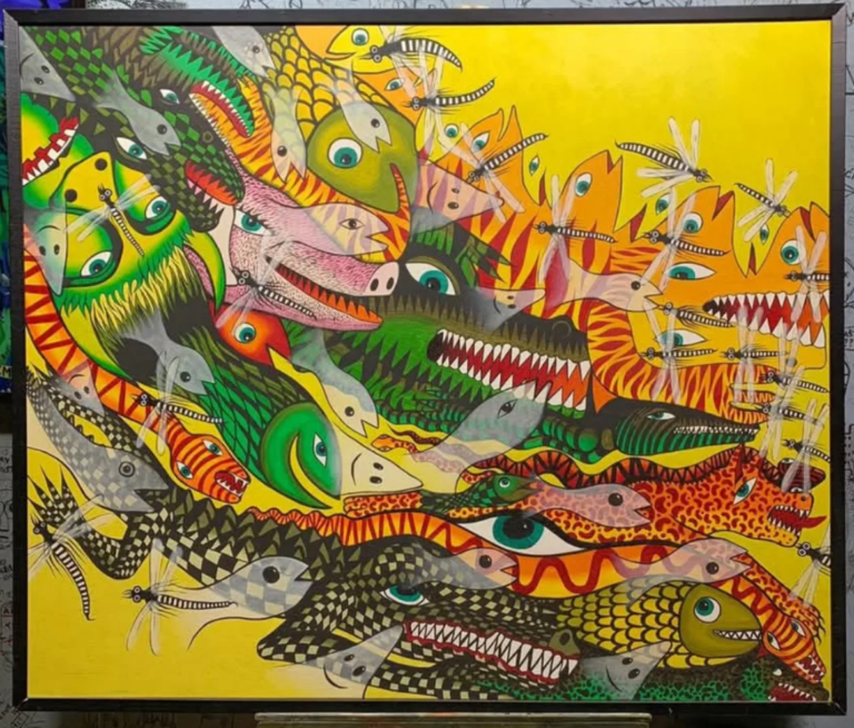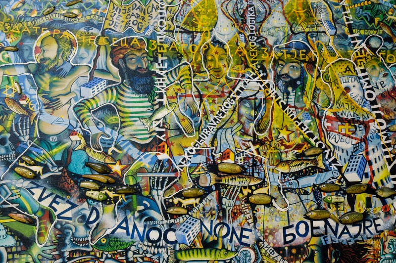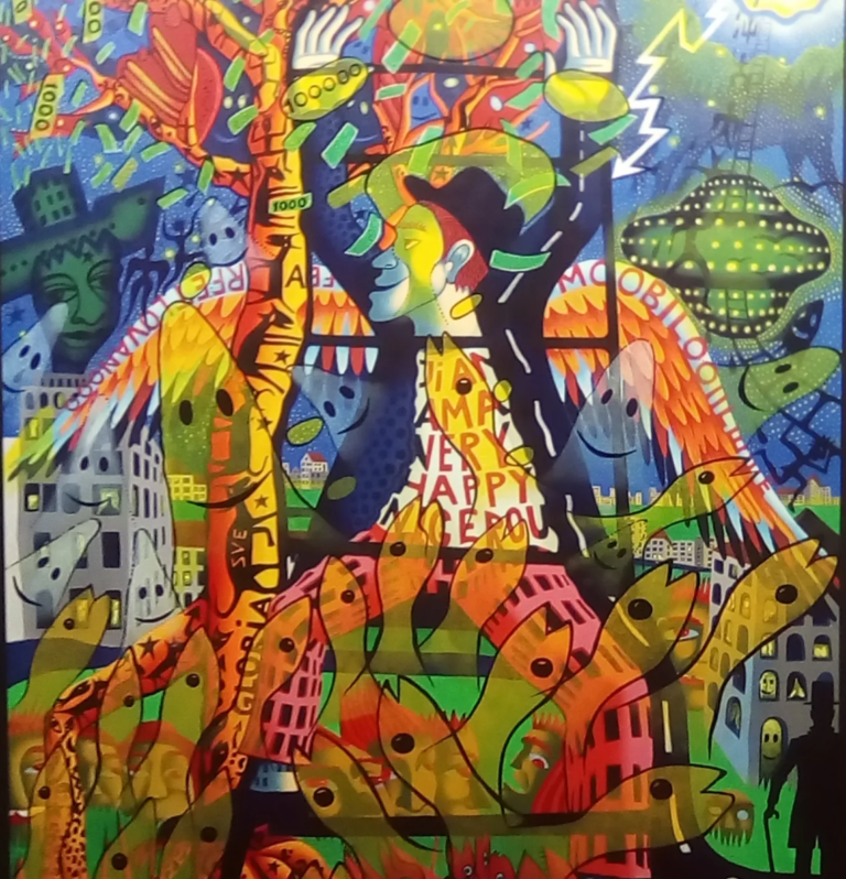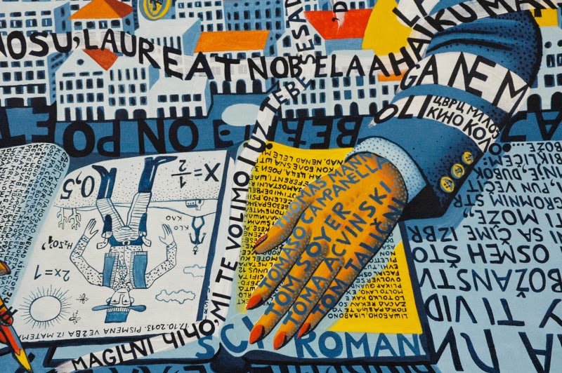 To su budući stanovnici koji nam dolaze sa svih strana, a tu su i na njegov prepoznatjliv način ucrtane i ribe na suvom i komarci, takođe svaki sa svojim posebnim crtama i izrazom lica, kako ujedno dosađuju i čine taj grad zanimljivijim i lepšim.