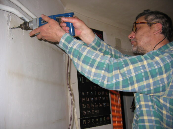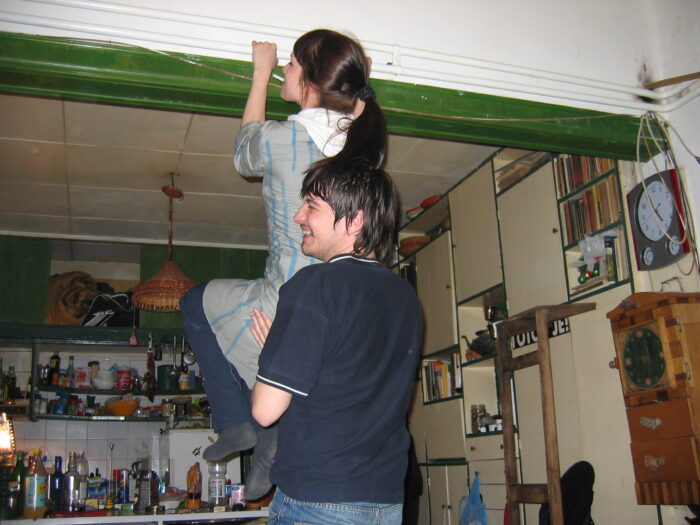 U to vreme smo po ceo dan provodili tamo na kod Radeckog gde je sve uvek bilo jeftino, a riblja čorba često čak vrlo jestiva. Uvek na bajsevima, lako pokretni pripadnici triju generacija, delili smo ista interesovanja i bili smo dobro raspoloženi i kad je bilo puno razloga da budemo nadrkani. Imali smo i jednu foto-seansu koja se održala u dvorištu, odnosno parkiću ispred njegove zgrade u Zemunu. Tada sam pod idealnim difuznim svetlom slikao sve njegove radove koji su se mogli izneti iz kuće, a to znači uglavnom ulja na platnu, skulpture i manja ulja na drvetu, a bilo je tu i običnih crteža i kombinovanih radova. Tu je bila i njegova čuvena lampa na okretanje koja je radila na toplotnu svetlost sijalice. Izumitelj Radović se i toga dosetio. Uključiš lampu i ona svetli a kada se sijalica dovoljno ugreje (a morala je biti ona stara i po prilici od bar 200 vati) abažur počne da se vrti. Čudno neviđeno! I ona je bila izlagana u Kornetu i mnogi su naivno pitali gde je tu elektromotor. On je i inače bio majstor. Baš negde u to vreme te foto seanse došao je da mi popravi i na mesto vrati policu koju su dan ranije u nekom ludovanju porušili Tobić i Milica Balubdžić tako što je on nagovorio da pravi zgibove na cevima od centralnog grejanja, kao što se vidi na fotografijama.