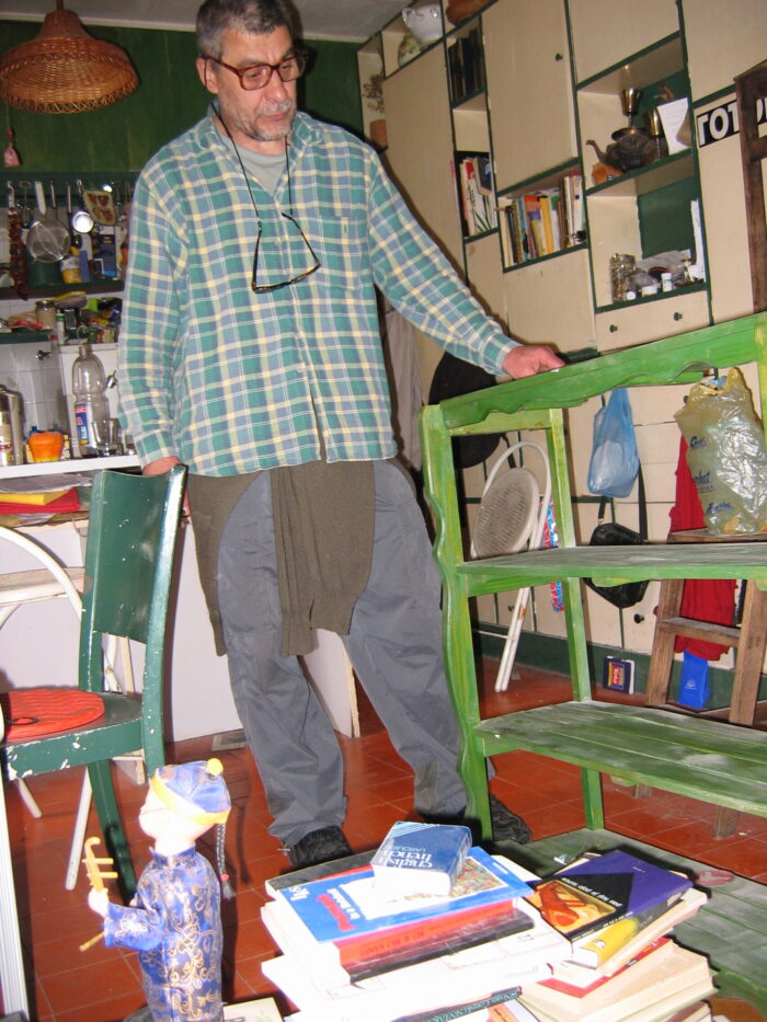 Ali pre nego što je junak ove priče, koji je pre neki dan umro a nije se nikom javio, postao poznat širim masama, imao je i akciju sa fotografom Ivanom Zupancom i kombijem pod nazovom Umetnobil koji je sav bio ispisan tim njegovim mudrostima. Ja nisam ni znao za to vozilo a onda mi se desilo da to čudo od prevoznog sredstva prozuji pored mene u Brankovoj ulici kada sam jednom prilikom išao u APR. Zamislite to iznenađenje! I potrčim za njim da vidim dole na semaforu izbliza o čemu se radi, ali nisam stigao. Upalilo se zeleno i ode ta sprava svojim putem dalje Brankovim mostom ka Zemunu verovatno.