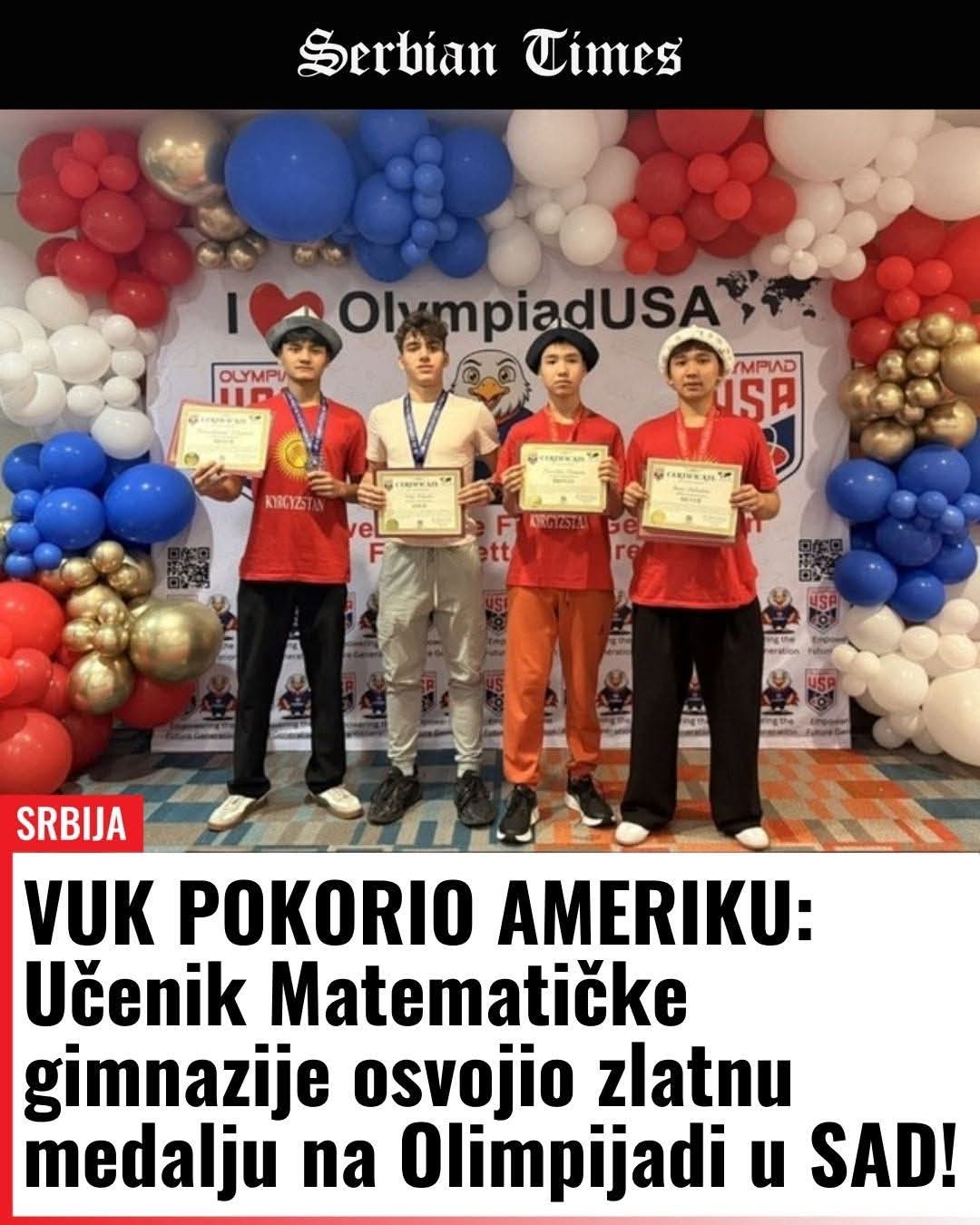 VUK POKORIO AMERIKU: Učenik Matematičke gimnazije osvojio zlatnu medalju na Olimpijadi u SAD!